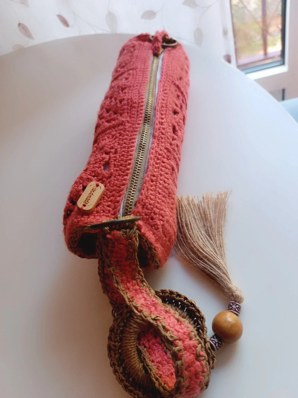 Bolso de crochet y rafia «Coral Sunset»